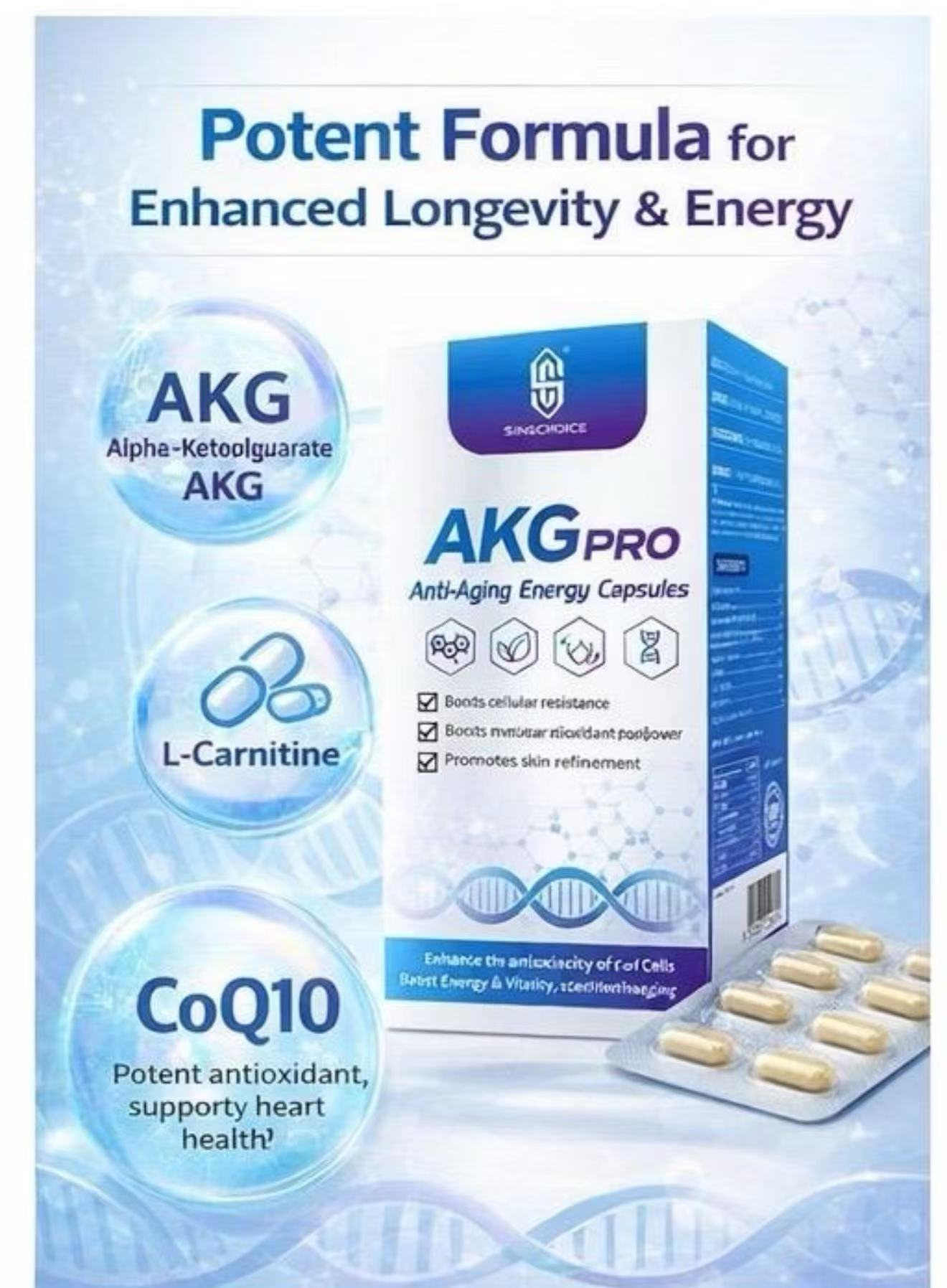 SINGCHOICE的NMN以独有的配方立足健康产业,每粒含有高纯度的NMN,有效提升人体内NAD+浓度的水平。SINGCHOICE NMN+12000,1粒配合270mg的NMN,适用于所有细胞的梦想补充剂。